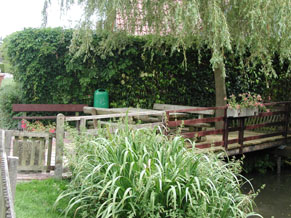 Auch das ehemalige Hotel "Freesenhof" hat sein Bild verändert. Im Jahre 2006 wurde es zum Mehrfamilienhaus umgebaut(rechts). Vorbei sind die Zeiten wo man als Gast in den gemütlichen Außenanlagen (unten) verweilen konnte. |